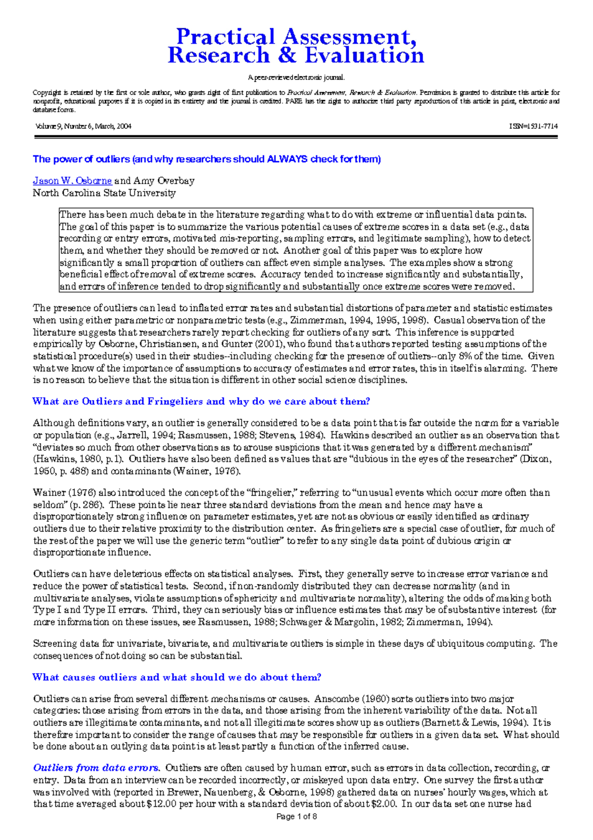 - Pdf The Power Of Outliers And Why Researchers Should Always Check For Them . It's Not Surprising That Human Error Represents The Single Most Common.