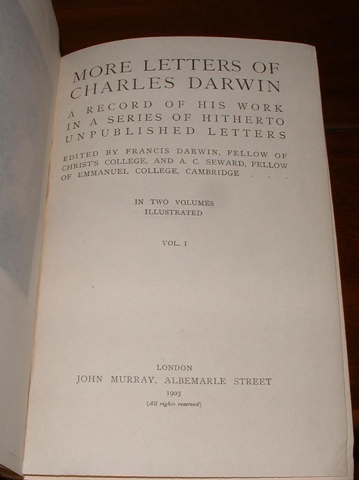 - More Letters Of Charles Darwin A Record Of His Works In A Series Of Hitherto Unpublished Lettersedited By Francis Darwin And A Cseward Volume 1 Auh Je K Ia Iciilatr Fiycji Er Ted By Francis Darwin , Sein Leben, Dargestellt In Einem Autobiographischen Capitel Und In Einer Ausgewählten Reihe Seiner Veröffentlichten Briefe.