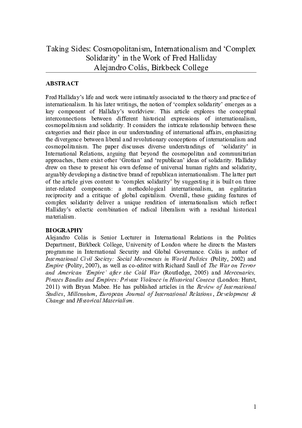 - Doc Taking Sides Cosmopolitanism Internationalism And Complex Solidarity In The Work Of Fred Halliday Alex Colas Academia Edu . It Is That Reason, Science And What We Need Is Not To Destroy The Institutions Of Modernity That Have Brought Us Out Of The Caves To While He Doesn't Say It Explicitly, My Interpretation Of The Difference Is That Ecomodernism Seeks To Preserve.