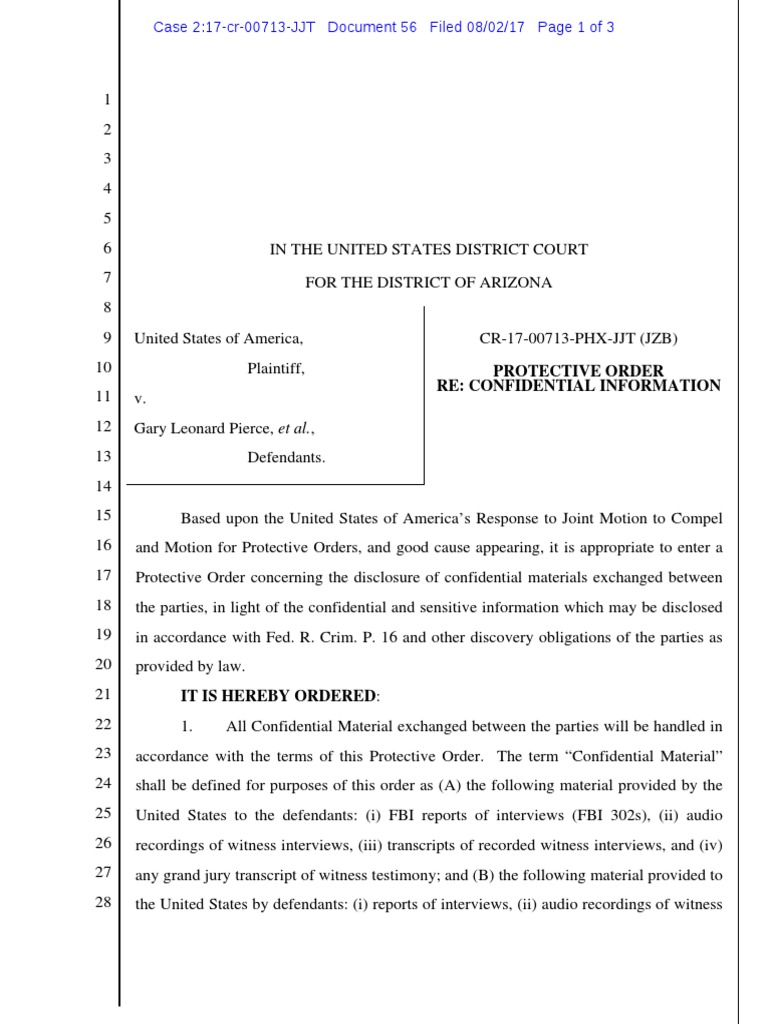 - U S A V Pierce Et Al Protective Order 2 Witness Discovery Law , Tweets Regarding Appeals In Az.